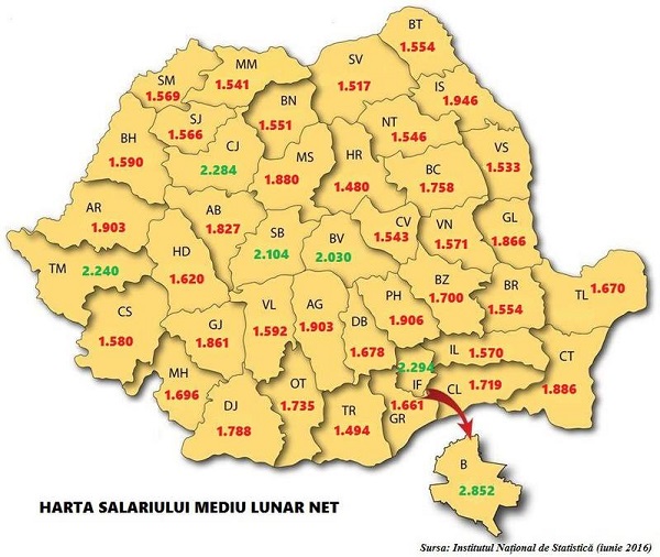 Teleorman, judetul lui Dragnea are 32,6% forta angajata, va dati seama ca este si ultimul pe lista veniturilor, deci cam asa esteviata in inima tarii PSD-ului, unde voteaza si mortii! Urmeaza judetul Vaslui, unde doar 34% din populatia activa are salariu.Harghita si Covasna au cele mai mici salarii nete din Romania, insa aici se fura lemn la greu, deci poate ca o duc mai bine decat pare. Nici Aradul nu sta cine stie ce, 57% angajati si evident 43% fara slujba. In ritmul asta cine mai spera sa o ducem mai bine in 2017?